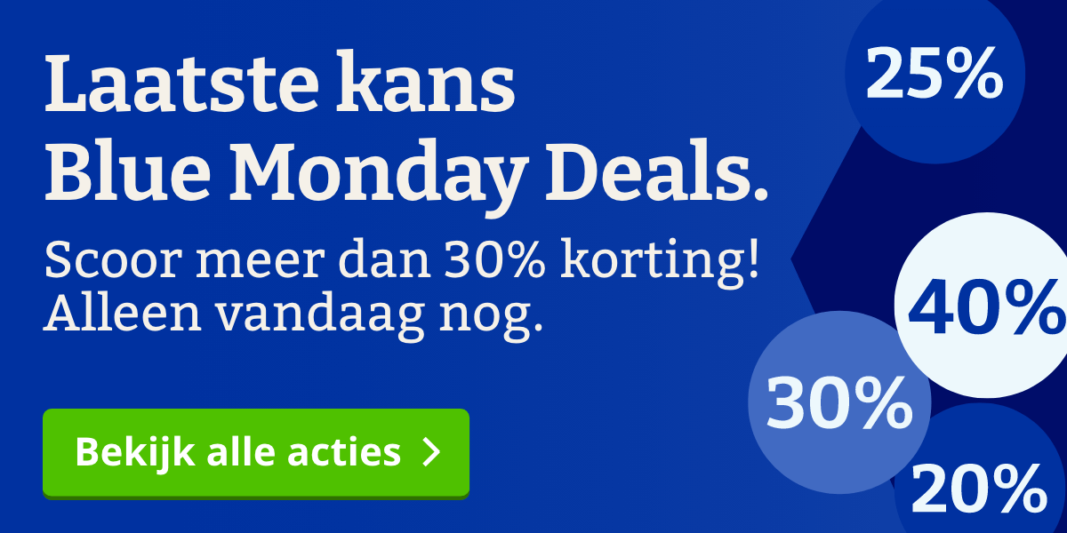 | Goed nieuws! De Blue Monday Deals zijn verlengd, maar niet voor lang. Alleen vandaag profiteer je nog van deze deals. Scoor scherpe aanbiedingen op kampeer- en outdoorartikelen en ga goed voorbereid op pad. Wacht niet te lang, want op = op. |